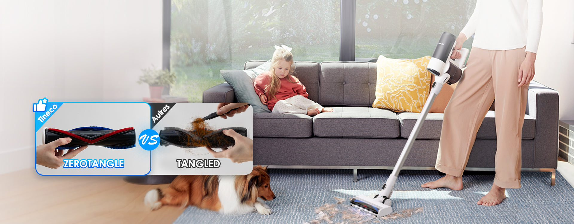 La brosse conçue spécialement cible spécifiquement les poils, cheveux et poils d’animaux sans qu’ils ne s’emmêlent, ce qui rend la brosse plus facile à nettoyer. Idéal pour ceux qui ont des animaux de compagnie, cet aspirateur balai sans fil facilite l'entretien des poils d'animaux. Aspirer les cheveux et poils, qu’ils soient longs ou courts, devient un jeu d’enfant!