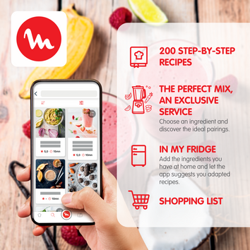 L'application gratuite Moulinex propose plus de 200 recettes et notre service Mix Parfait exclusif vous permet de trouver de nouvelles et savoureuses associations d'ingrédients, et bien plus.