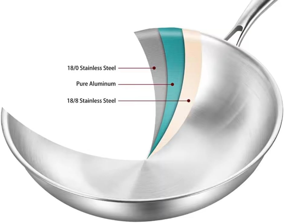 KLAUS Wok 28 cm en Inox inoxydable haute qualité Tous Feux Dont Induction | Cuisson Saine et Homogène | Facile à Nettoyer
