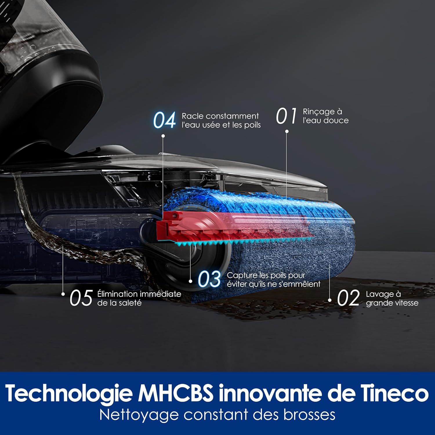 🔥 Auto-nettoyage FlashDry 85 °C : rouleau lavé, séché et désinfecté automatiquement